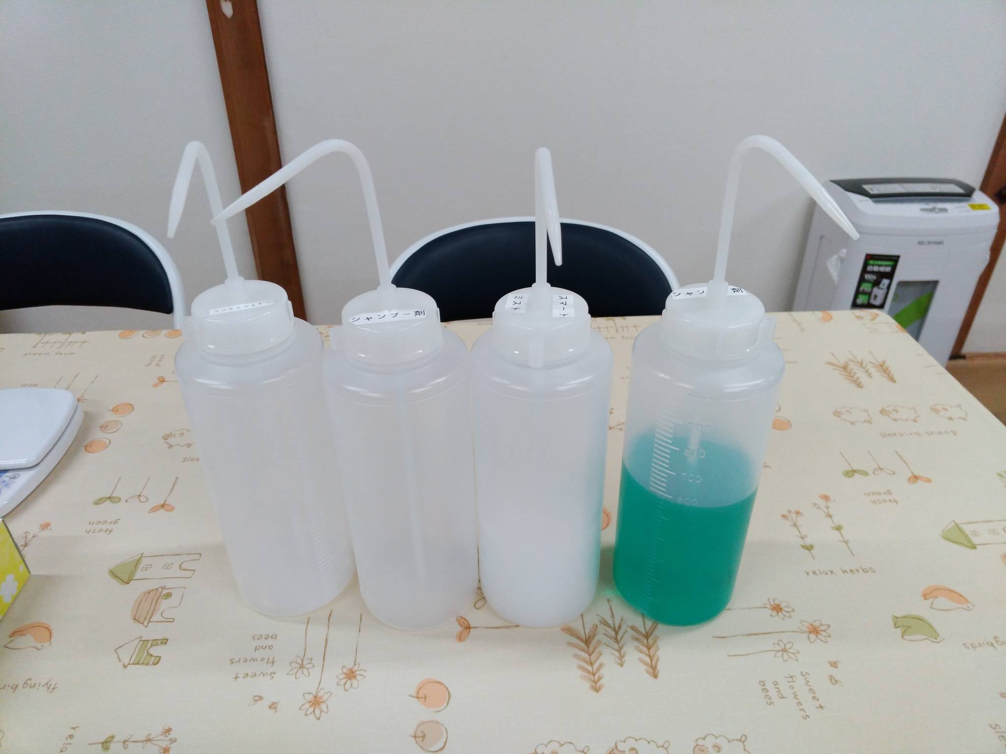 現在はこのように、持ちやすく、入れやすく、こぼれにくいようにしました。これで液体関係はほとんどこぼさなくなりました。